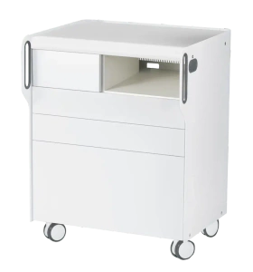 Szafka podologiczna RUCK ROOM move M z przegrodą na frezarkę po lewej stronie, 3 szuflady, CPL biały