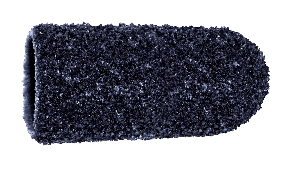 - Wyróżniają się równiutko rozłożonym korundem na idealnej formie z naturalnej, bardzo mocnej bawełny. Czarny korund zespolony jest mocnym klejem nie zawierającym fenylu ani aldehydu. Klej jest bezpieczny i nieszkodliwy dla ludzkiej skóry. Nie wywołuje alergii. Półokrągła forma kapturka idealnie pasuje do nośnika kapturków, który może być poddany czyszczeniu i dezynfekcji zarówno metodą kąpielową jak i ultradźwiękami (czytaj opis nośników kapturków ściernych).