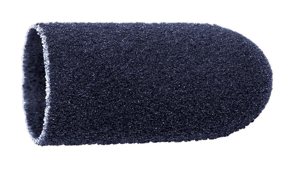 - Wyróżniają się równiutko rozłożonym korundem na idealnej formie z naturalnej, bardzo mocnej bawełny. Czarny korund zespolony jest mocnym klejem nie zawierającym fenylu ani aldehydu. Klej jest bezpieczny i nieszkodliwy dla ludzkiej skóry. Nie wywołuje alergii. Półokrągła forma kapturka idealnie pasuje do nośnika kapturków, który może być poddany czyszczeniu i dezynfekcji zarówno metodą kąpielową jak i ultradźwiękami (czytaj opis nośników kapturków ściernych).