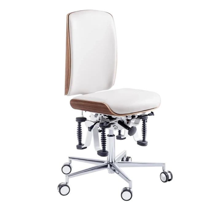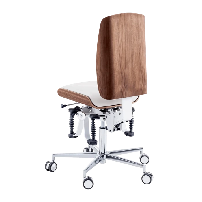 - Krzesło zdrowotne PODOLOG® STOOL Bioswing stelaż sklejka drewna orzechowego ma specjalne wahadła, które stabilnie poruszają się wraz z siedzącym człowiekiem i aktywują poszczególne mięśnie kręgosłupa chroniąc go przed bólem i skrzywieniem.