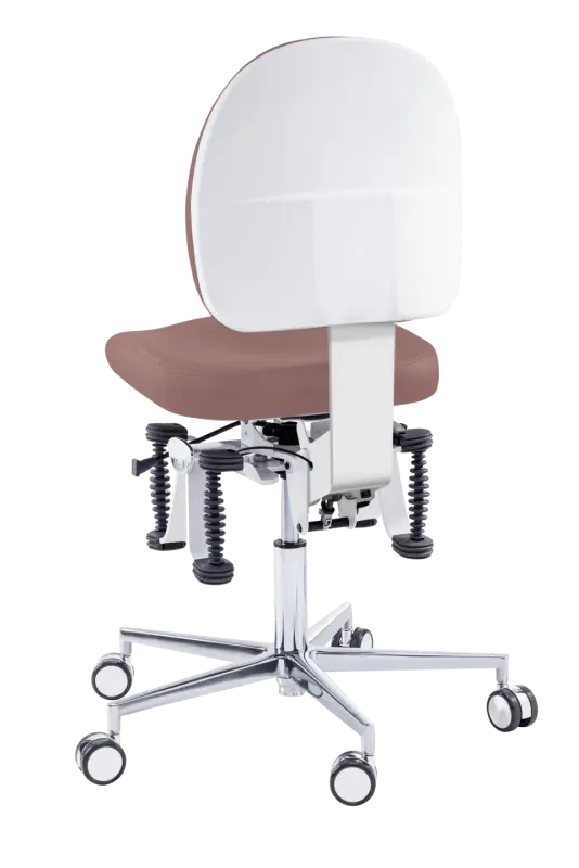 - Specjalne wahadła służą jako znakomity amortyzator i równoważnia dla kręgosłupa. Sprawiają, że mięśnie przy kręgosłupie cały czas pobudzane są do jego aktywności w pozycji prostej (zdrowotnej). Ponadto każdy ruch na tym krześle powoduje aktywację mięśni poszczególnych partii ciała, co w efekcie relaksuje i sprawia, że nawet długotrwałe siedzenie jest przyjemnością dla użytkownika.