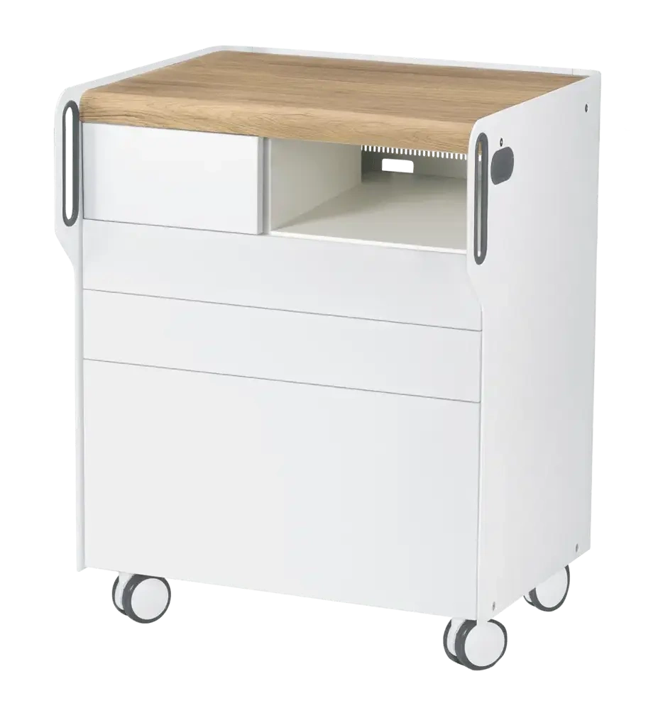 Szafka podologiczna RUCK ROOM move M z przegrodą na frezarkę po prawej stronie, 3 szuflady, CPL dąb