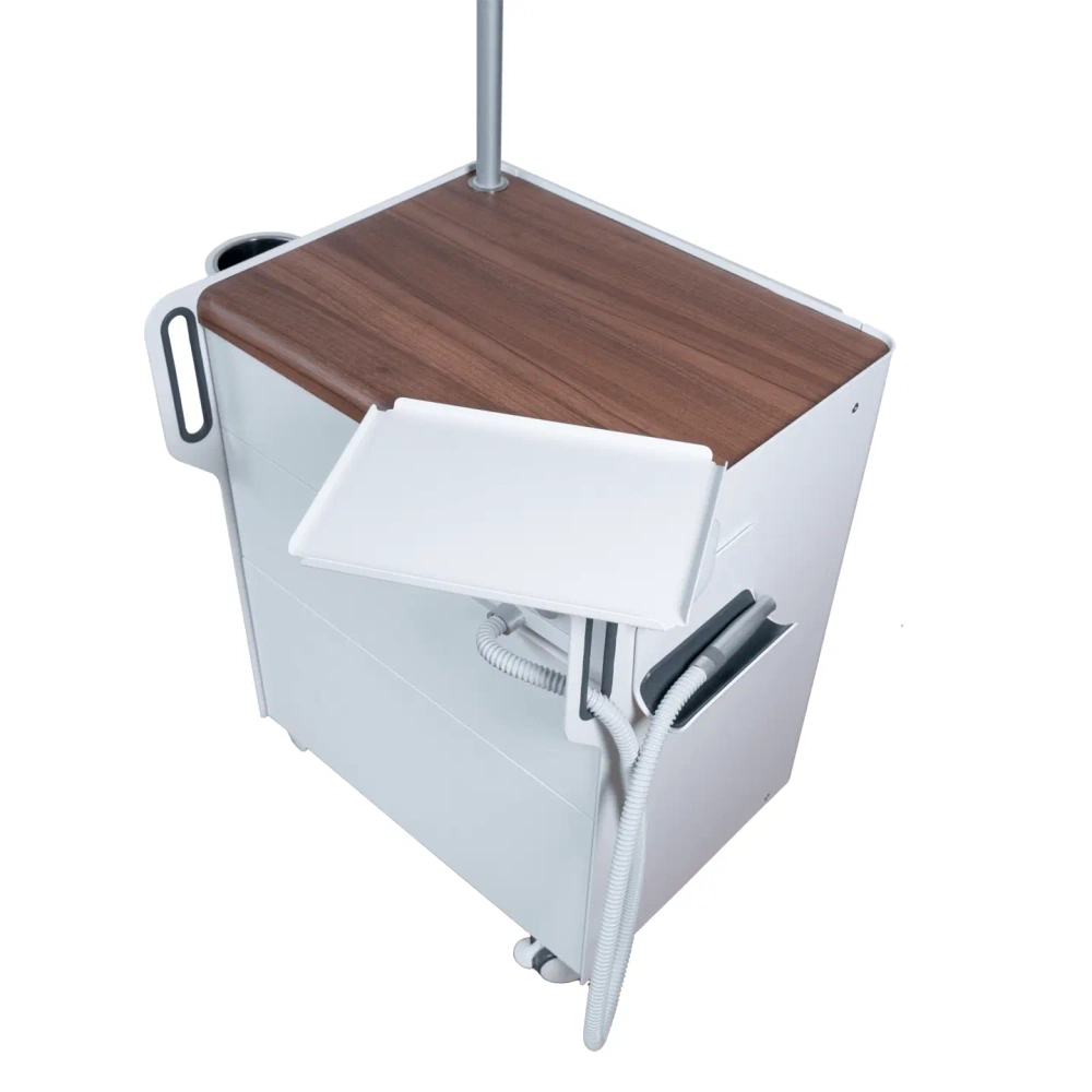 Funkcjonalna i estetyczna - tacka obrotowa RUCK® zapewnia szybki dostęp do narzędzi, ułatwiając codzienną pracę w nowoczesnym gabinecie podologicznym.